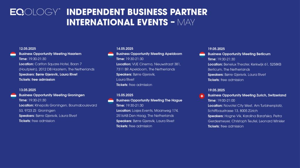 Business Opportunity Meeting Tour 12. bis 19. Mai – Erkennen Sie die Geschäftsmöglichkeit mit Eqology
