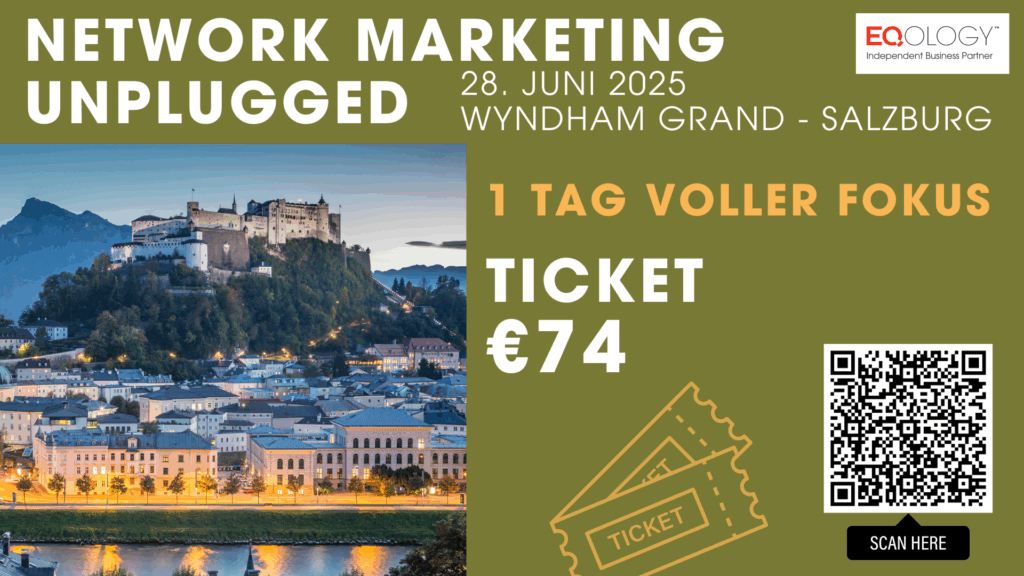 28.06.2025 @ 10:00 – 17:00 – Beim Network Marketing Unplugged gibt’s für dich und dein Team einen Tag lang Training, Inspiration und viele Inputs, damit du dein Eqology Geschäft mit Elan und Know-How auch im Sommer vorantreiben kannst. 1 Tag voller Fokus Termin: Samstag, 28. Juni 2025 Uhrzeit: von 10:00-17:00 Preise: Kick-Off Event-Promo: 47 EUR (bis MO, 13.01.2025 23:59) Early Bird: […]