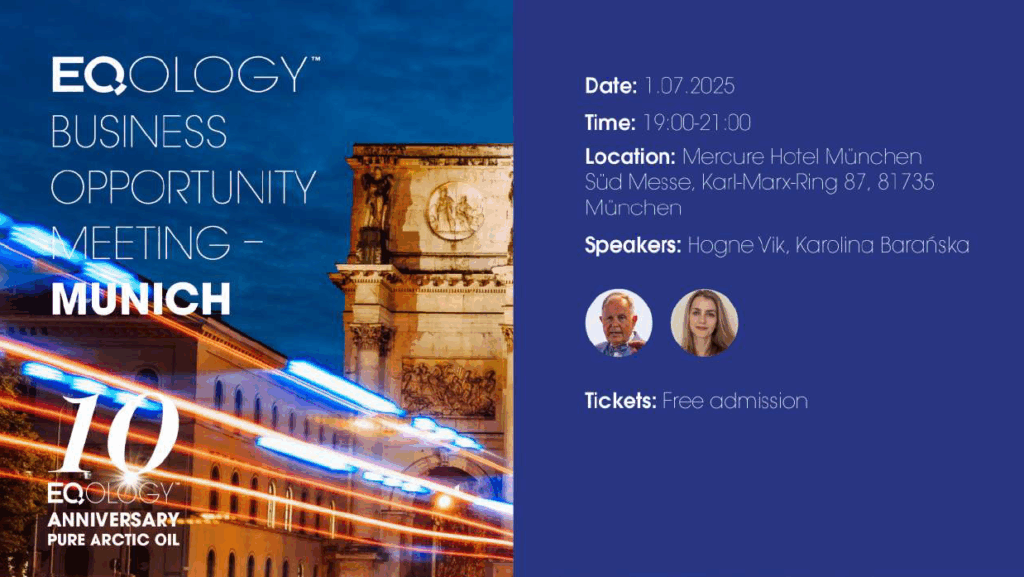 01.07.2025 @ 19:00 – 21:00 – Business Opportunity Meeting – München Entdecken Sie das Potenzial von Network Marketing und erfahren Sie mehr über die Chancen einer Zusammenarbeit mit der Firma Eqology, dem Experten für hochwertige Omega-3-Fettsäure Produkte aus dem arktischen Meer.