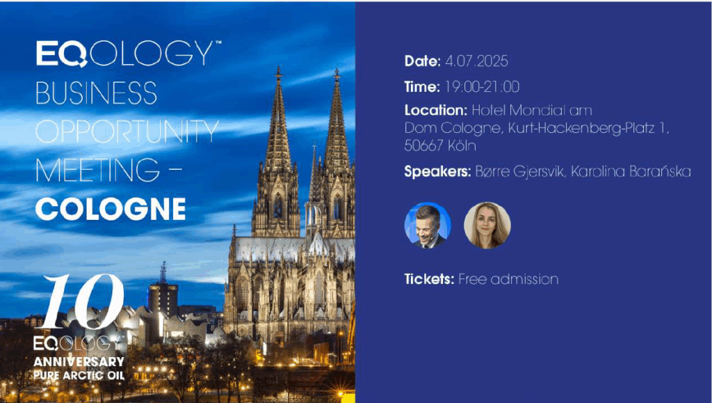 04.07.2025 @ 19:00 – 21:00 – Business Opportunity Meeting – Köln Entdecken Sie das Potenzial von Network Marketing und erfahren Sie mehr über die Chancen einer Zusammenarbeit mit der Firma Eqology, dem Experten für hochwertige Omega-3-Fettsäure Produkte aus dem arktischen Meer.