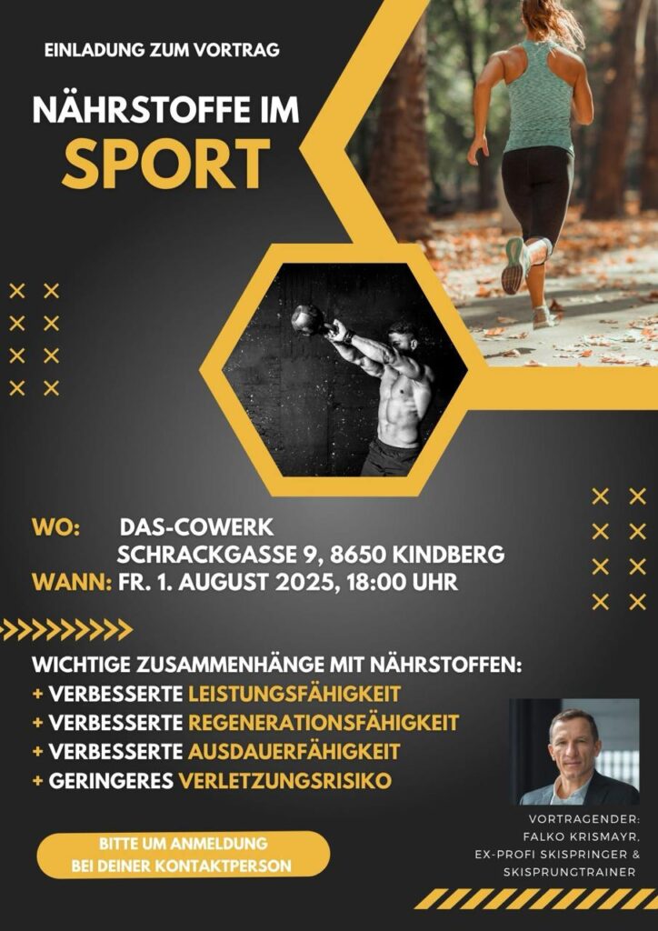 01.08.2025 @ 19:30 – 20:30 – 18.00 Uhr Gesundheitsvortrag – Spezialthema Sport mit Falko Krismayr & Bernd Russ 19.30 Uhr Geschäftspräsentation mit Falko Krismayr sowie Nina & Bernd Russ Für diese beiden Events gibt es ein Kombiticket welches unter folgendem Link buchbar ist: https://shop.eventjet.at/de/bom/event/6ed63fe7-bd06-487b-b4c3-ef7a9ecce92d