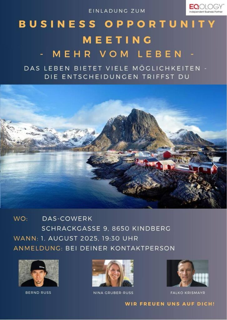 BOM Business Opportunity Meeting – Geschäftspräsentation STEIERMARK mit Falko Krismayr, Bernd Russ, Nina Gruber-Russ
