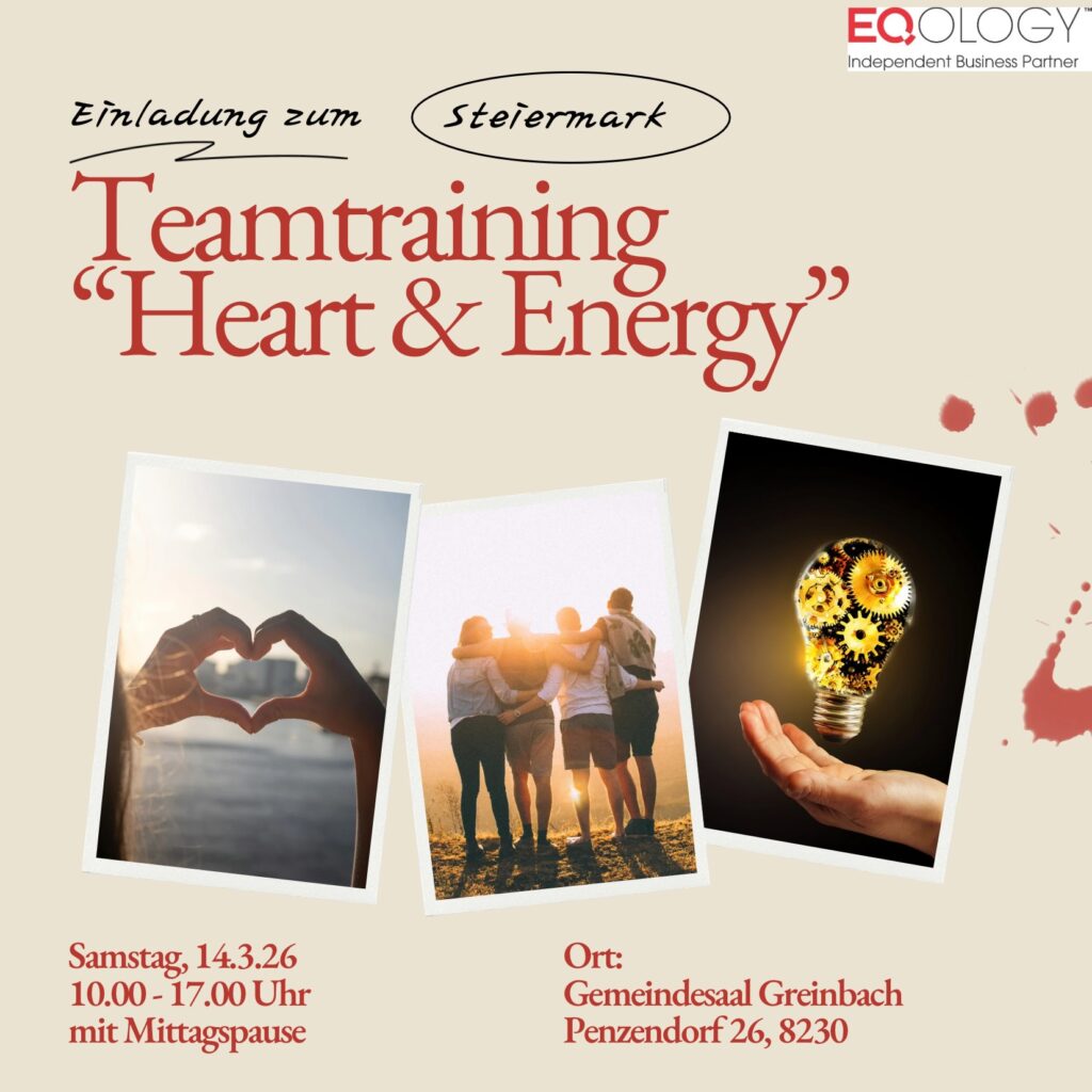 14.03.2026 @ 10:00 – 17:00 – Wir möchten euch herzlich zum Teamtraining Penzendorf, das ganz unter dem Motto „Heart & Energy“ steht, einladen. Euch erwartet ein Tag voller Mehrwert und vielen Inputs für eure tägliche Arbeit mit Menschen. Wir freuen uns auf diesen Tag mit euch, auf dass wir mit viel Energie und Herzblut durchs Jahr 2026 gehen! Bitte um verbindliche […]